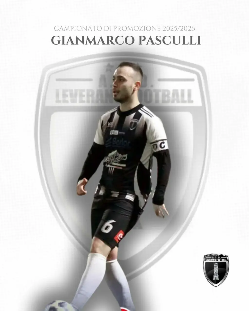 Il nostro capitano sceglie ancora una volta il cuore bianconero: Gianmarco Pasculli confermato al centro della difesa del Leverano Football!