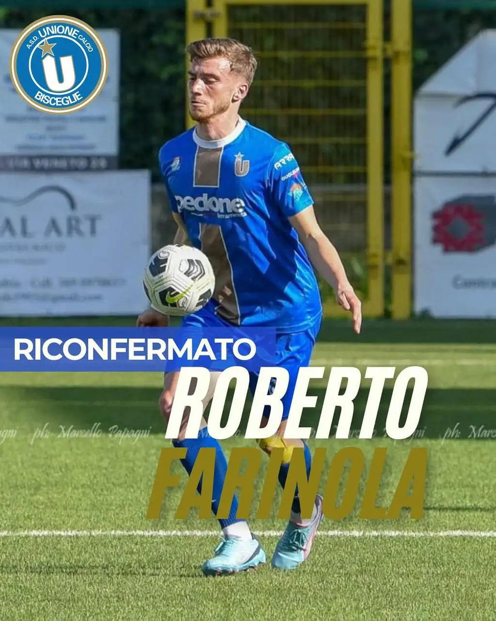L’Unione Calcio Bisceglie continua a fare le cose in grande in vista della prossima stagione e, proprio all’alba del prossimo campionato di Eccellenza, si regala un ultimo grande colpo di mercato; confermando sull’out di sinistra il laterale mancino Roberto Farinola.