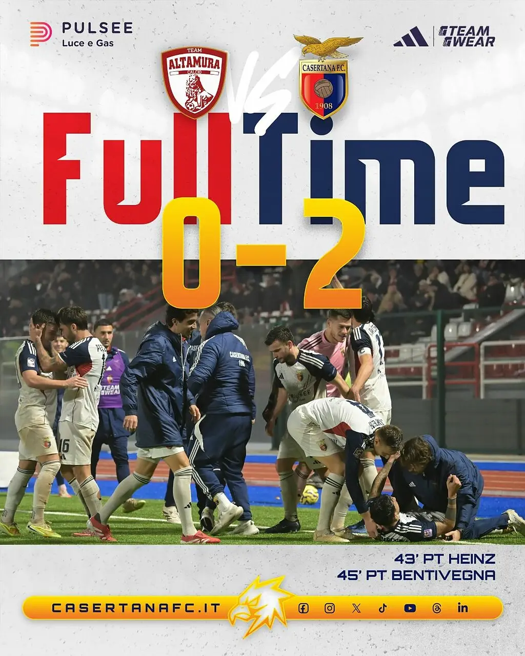 Team Altamura (4-3-3): Viola; Mane, Silletti, De Santis, Ortisi; Ganfornina (Dall’89’ Dibenedetto), Grande, Franco (Dal 65′ Andreoli); Rolando, Leonetti (Dal 65′ Rizzo), D’Amico (Dall’80’ Simone). All: Di Donato. A disposizione: Spina, Onofrietti, Lagonigro, Palermo.