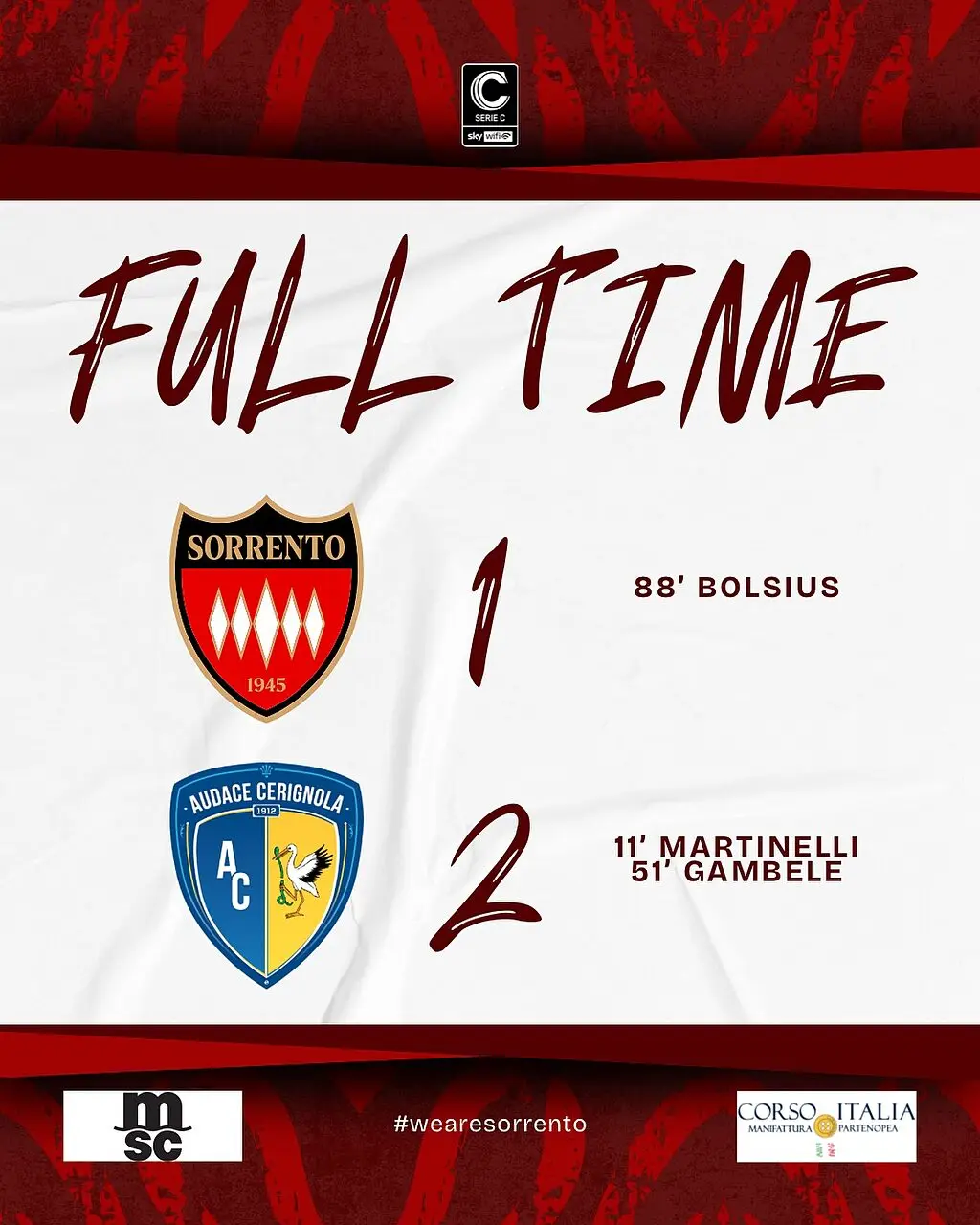 SORRENTO-AUDACE CERIGNOLA 1-2