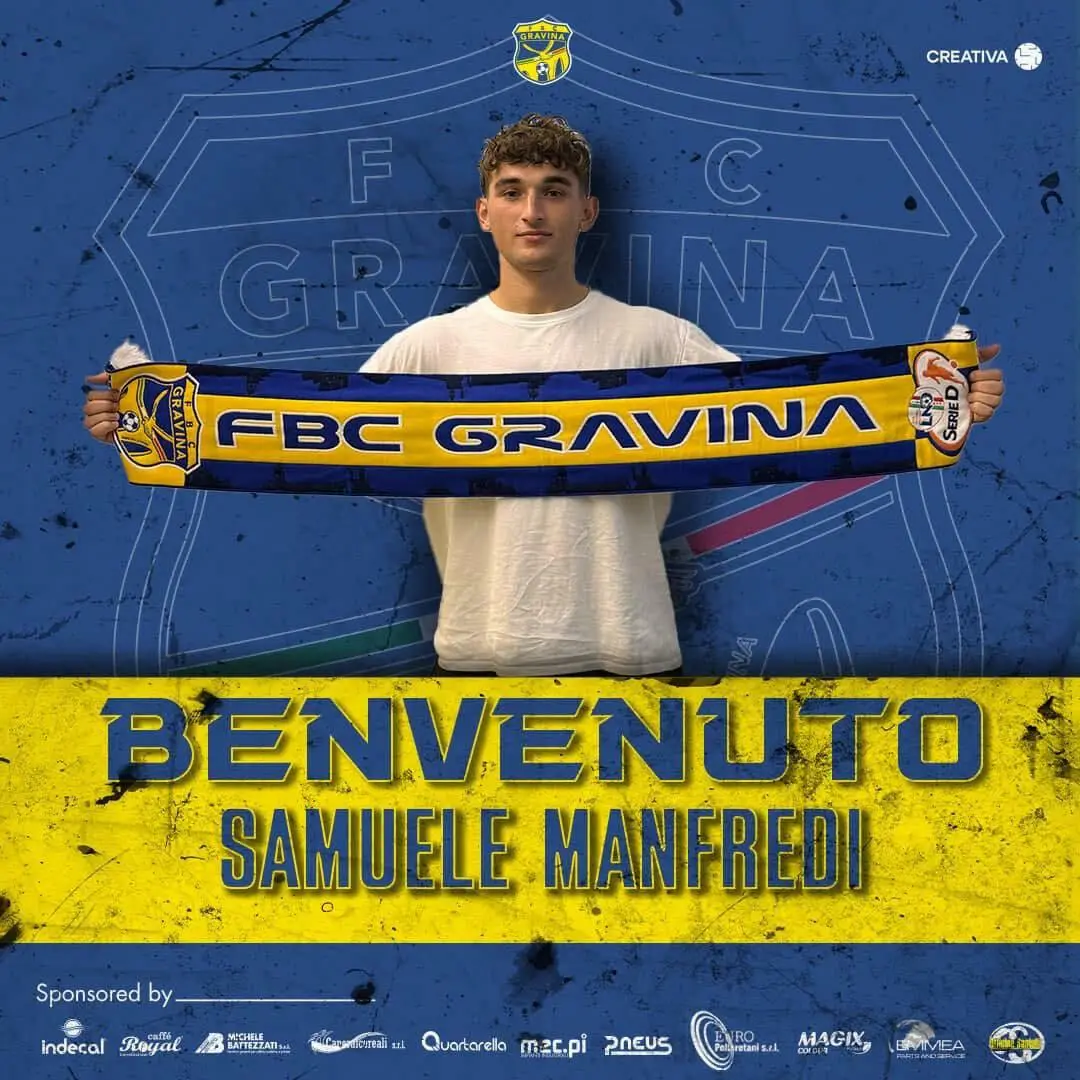 La FBC Gravina comunica di aver acquisito le prestazioni sportive del calciatore Samuele Manfredi. Terzino destro di spinta, Manfredi, nato a Monopoli nel 2005, è cresciuto nel settore giovanile del Lecce. Nella passata stagione è stato protagonista con la maglia del Fasano allenato da mister Tiozzo disputando 29 partite. In questa stagione ha militato nella Recanatese, club militante nel girone G. Manfredi ha svolto già gli allenamenti questa settimana agli ordini del tecnico Veneto del Gravina ed è a disposizione per la gara di domani a Casarano.