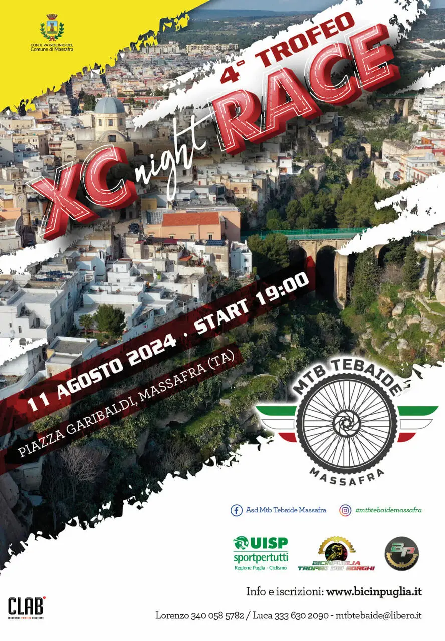 Non si è ancora spento l'eco del grande successo del Trofeo dei Borghi di Castellaneta che Bicinpuglia è già pronta per rimettersi in viaggio per il quarto, imperdibile, appuntamento del campionato estivo di Mountain bike Uisp: domenica 11 agosto si va a Massafra per la quarta edizione del XC NIGHT RACE organizzata dalla MTB Tebaide Massafra.