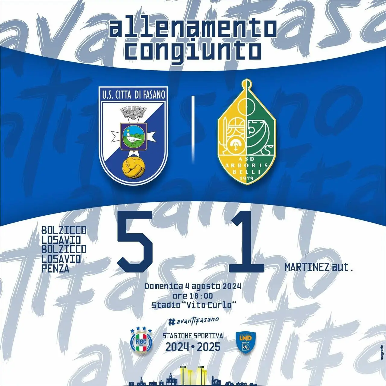 Termina con una vittoria il primo test della stagione al "Curlo" contro l'Arboris Belli, bella prova della squadra biancazzurra con molti spunti positivi al netto della prima settimana di ritiro e i pesanti carichi di lavoro.