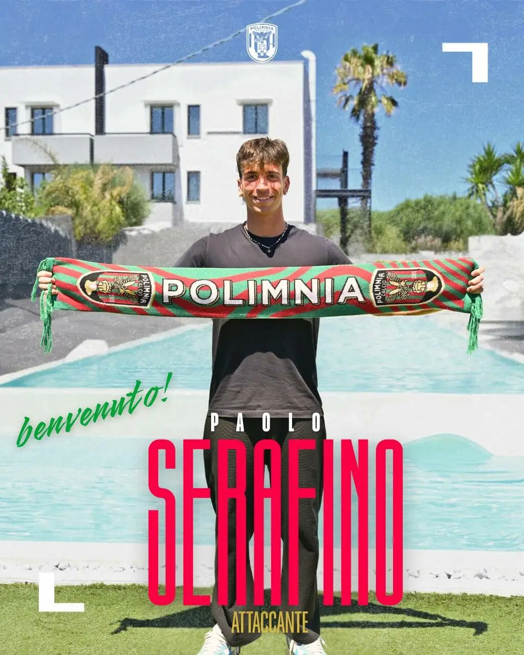 La Polimnia comunica che 𝗣𝗮𝗼𝗹𝗼 𝗦𝗲𝗿𝗮𝗳𝗶𝗻𝗼 é nuovo tesserato rossoverde. Attaccante classe 2001, nasce e cresce nel Taranto dove vince un campionato di serie D, si distingue nelle sue esperienze tra Brindisi, Fano, Manduria e Ginosa.