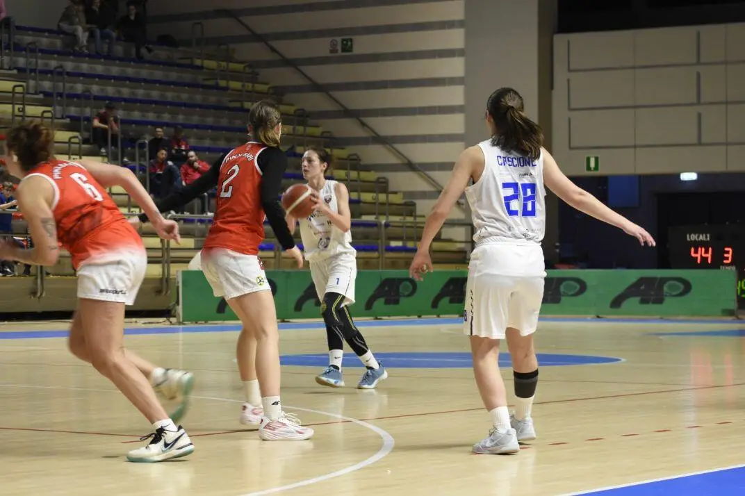Nel secondo tempo la Nuovi Orizzonti si affida alla sua giocatrice universale che ha saputo adattarsi al ruolo di playmaker per tessere trame di gioco e firmare canestri importanti – l’unica, per Taranto, a bruciare la retina dall’arco. Mastrototaro riesce a sbloccarsi, Zmierczak si becca la stoppata monstre di Iob. La Dinamo è sempre più padrona del campo. L’ultimo canestro del terzo quarto (46-42) lo realizza Smajic. Nel quarto periodo il divario si allarga. Aumenta anche l’intensità agonistica tra le due squadre che non si risparmiano. Vantaggio in doppia cifra (55-45) con Martelli, servita da capitan Gismondi. Bari prova a recuperare con i tiri dall’arco, ma manca di precisione anche nelle conclusioni ad alta percentuale. I tiri liberi nel finale premiano Taranto e una infallibile Smaliuk. Sul 61-52 può far festa il pubblico del PalaMazzola, oltre alla squadra e allo staff: gli oltre 250 spettatori, nota positiva dell’intero campionato.