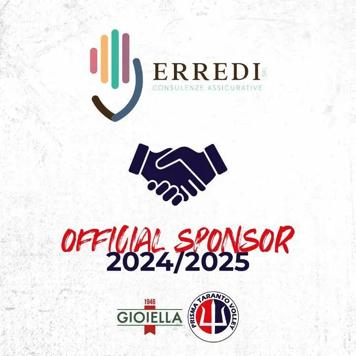 Fabio Tagarelli:"Abbiamo deciso quest’anno con la nostra società, la Erredi Consulenze Assicurative SRL, la nostra società assicurativa plurimandataria, di essere vicini al mondo dello sport tarantino. Abbiamo individuato nella Prisma Volley il progetto sportivo principale da sostenere nel nostro territorio. Agiremo anche a favore di realtà più piccole da un punto di vista sportivo, in virtù dei campionati che giocano, più amatoriali. Dal punto di vista professionistico, invece, la scelta è caduta sulla Prisma Volley. Per noi quest’anno era importante, l’abbiamo deciso io e mia moglie, i due soci, ma anche le nostre tre figlie che iniziano ad affacciarsi all’interno del nostro mondo lavorativo, essere vicini ad una realtà sportiva del territorio. La scelta sulla Prisma Volley per la qualità e la reputazione dei suoi proprietari Elisabetta Zelatore e Tonio Bongiovanni, per la qualità dello staff tecnico, del coach e del vice coach e dei giocatori.
