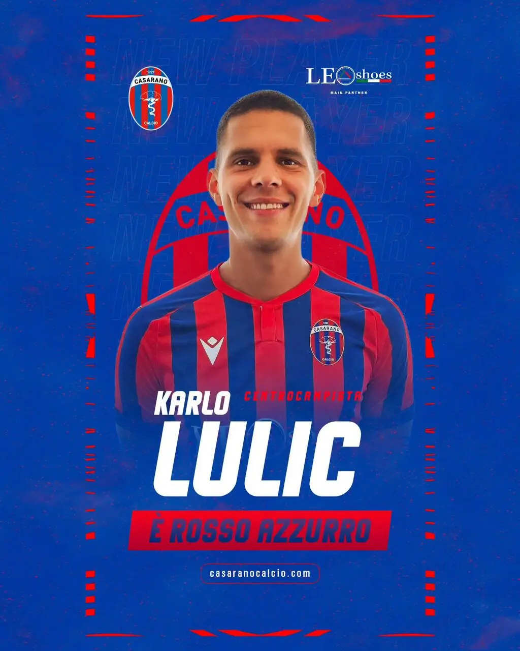 La società Casarano calcio comunica di aver acquisito le prestazioni professionali del calciatore Karlo Lulić, centrocampista croato, classe 1996 che arriva dal Bari.