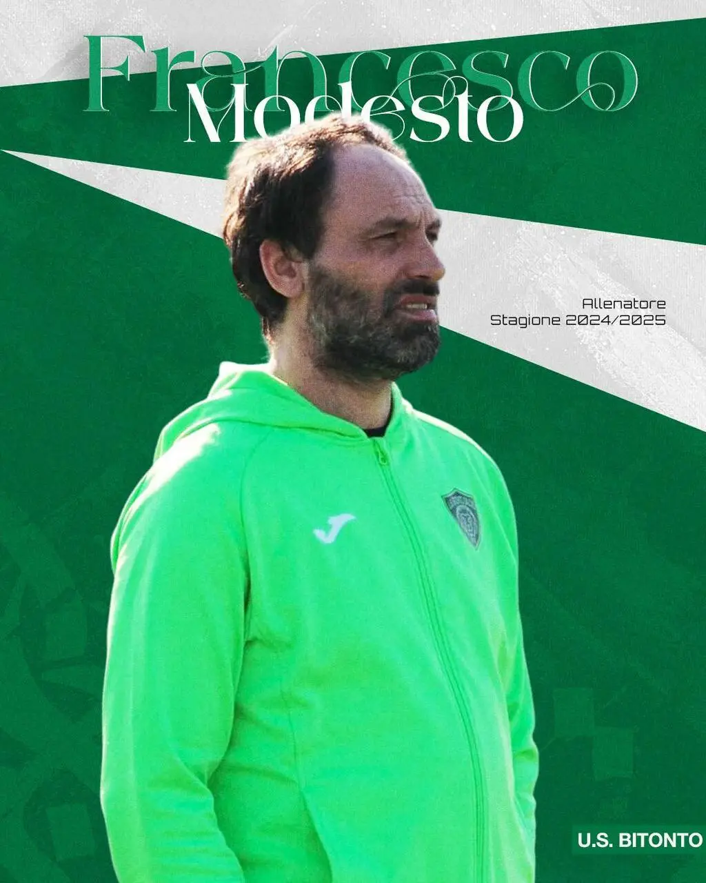 L’US Bitonto Calcio comunica di aver affidato l’incarico di Responsabile della Prima Squadra a mister Francesco Modesto. Il tecnico bitontino siederà sulla panchina neroverde già a partire dall’allenamento di questo pomeriggio.