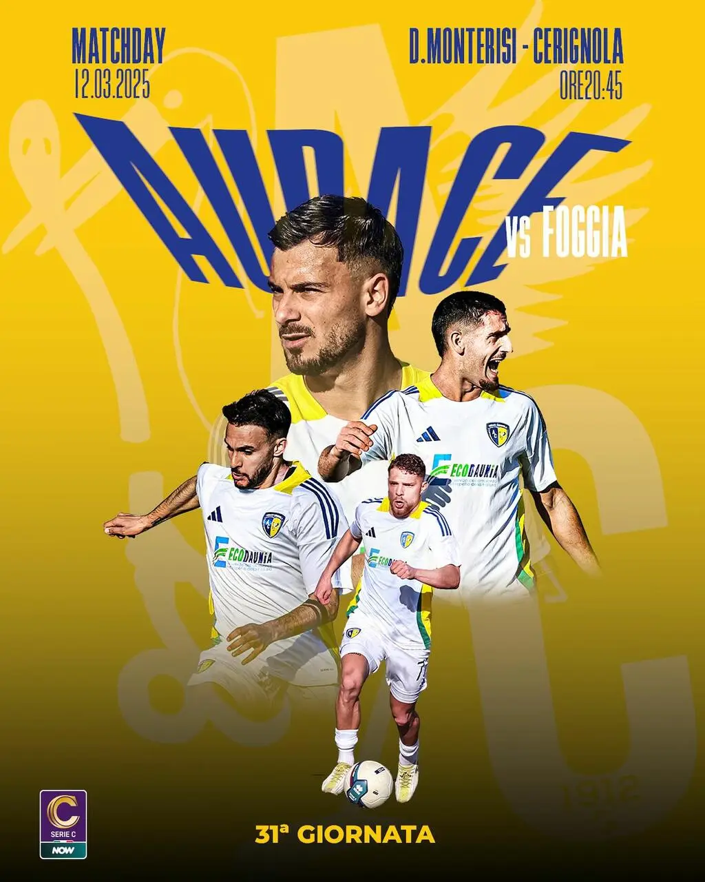 AUDACE CERIGNOLA (3-5-2) Greco; Romano (46’ Ligi), Martinelli, Visentin; Russo (94’ Nicolao), M. Tascone, Capomaggio, Bianchini (46’ Sainz Maza), Volpe (56’ Coccia); Achik (81’ McJannet), Salvemini. A disposizione: Saracco, Fares, Santarcangelo, D’Andrea, Velasquez, Gonnelli, Cuppone, Ianzano, Carrozza. Allenatore: Raffaele
