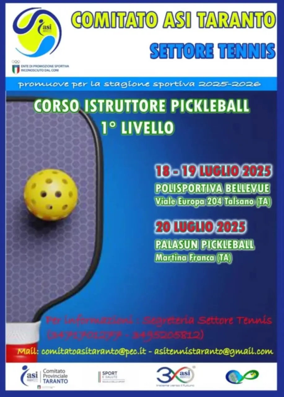 Ancora importanti novità per il mese di luglio presso il Centro Sportivo “Belle Vue” che nei giorni 18 e 19 ospiterà il corso di istruttore Pickleball di primo livello promosso per la stagione 2025-26 dal Comitato ASI - Settore Tennis. Per maggiori informazioni chiamare i numeri 3471701277 o 3495205812 (Segreteria Settore Tennis).