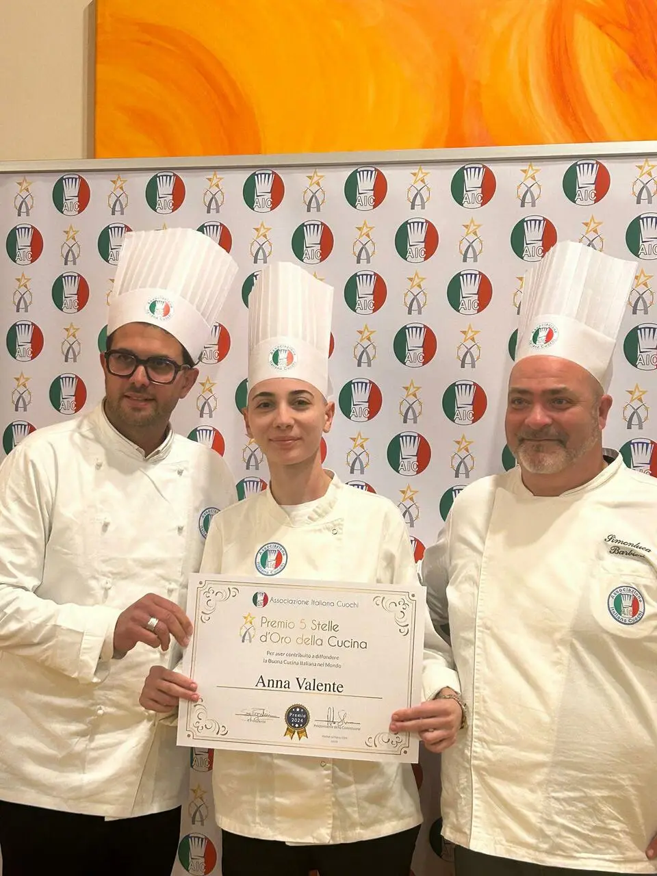 La chef massafrese Anna Valente ritira a Lecce il premio Cinque Stelle d'Oro della Cucina