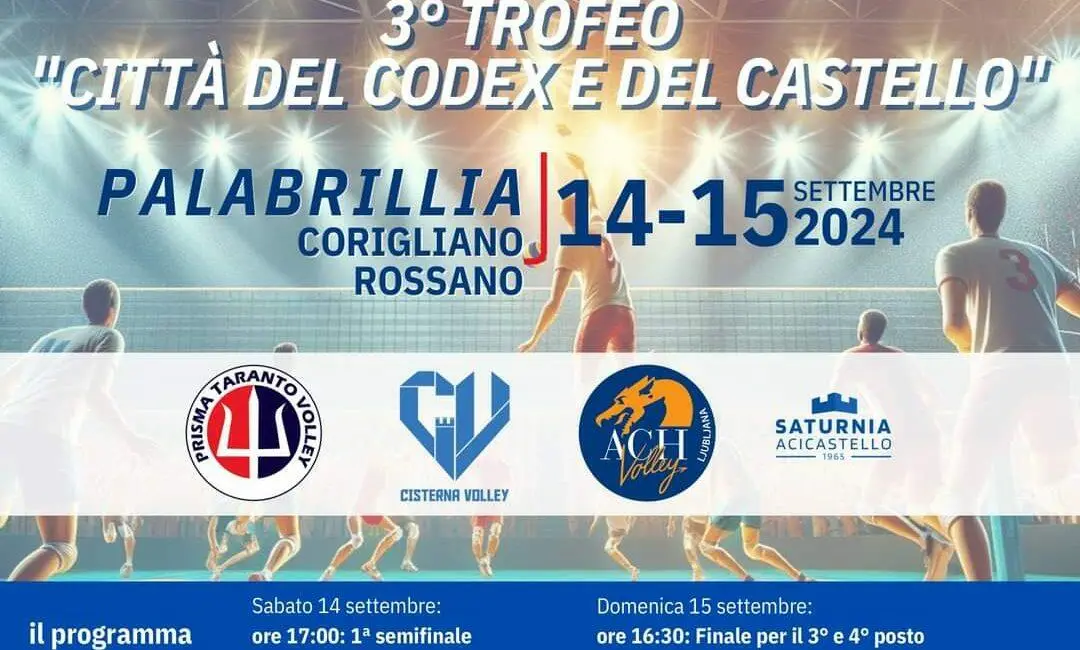 Il Trofeo “Città del Codex e del Castello” si conferma un evento di grande rilievo per gli appassionati di pallavolo, ma anche per il territorio di Corigliano Rossano, che grazie a questa manifestazione promuove i suoi simboli storici e culturali, come il Codex Purpureus Rossanensis e il Castello Ducale di Corigliano. Le squadre partecipanti sono pronte a dare spettacolo in un torneo che rappresenta non solo un importante test tecnico in vista della nuova stagione, ma anche un’occasione per mostrare il proprio potenziale.