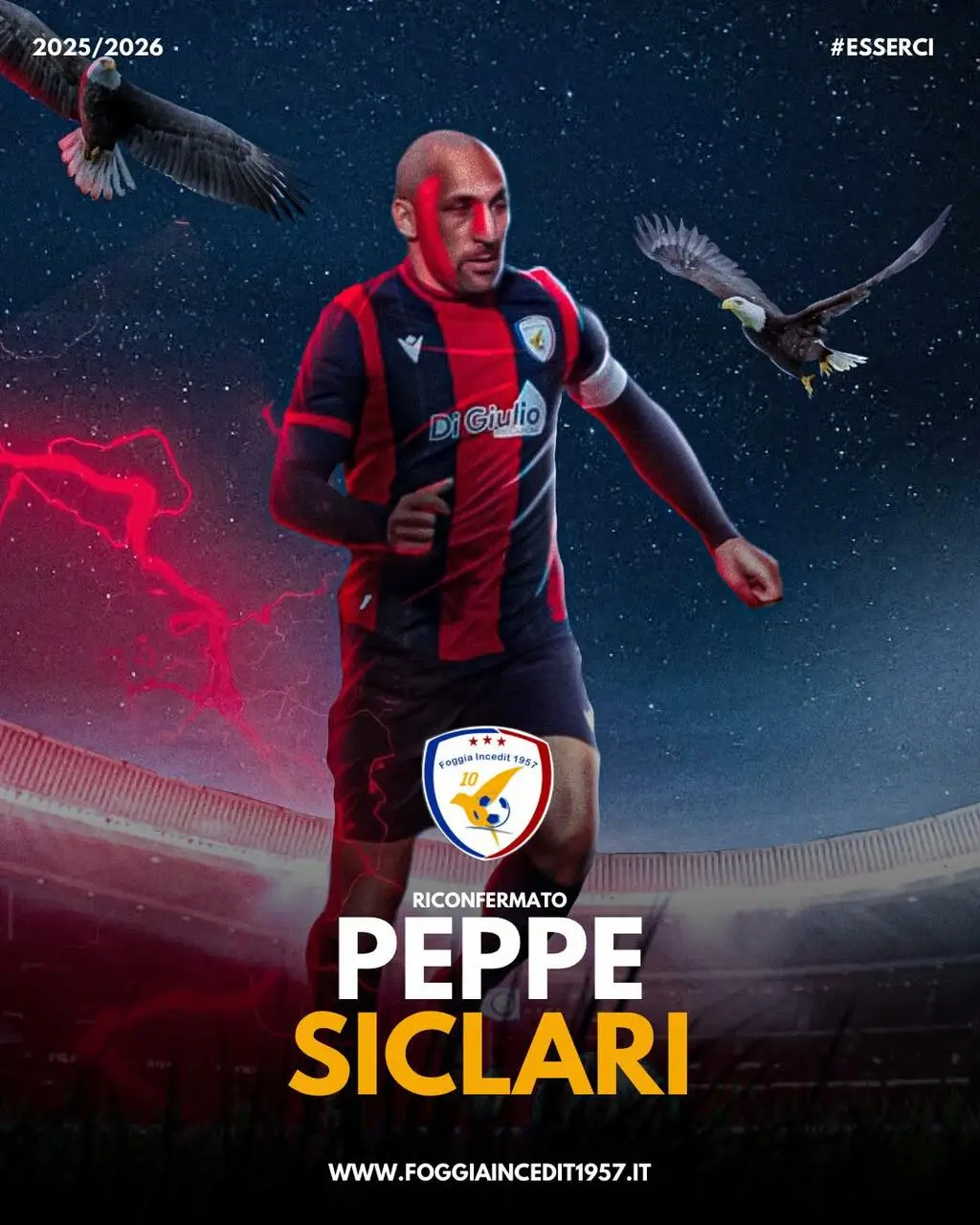 L’𝗔𝗦𝗗 𝗙𝗼𝗴𝗴𝗶𝗮 𝗜𝗻𝗰𝗲𝗱𝗶𝘁 comunica il rinnovo del contratto del calciatore 𝗚𝗶𝘂𝘀𝗲𝗽𝗽𝗲 𝗦𝗶𝗰𝗹𝗮𝗿𝗶, che resterà in maglia rossoblù fino al 30 giugno 2026.