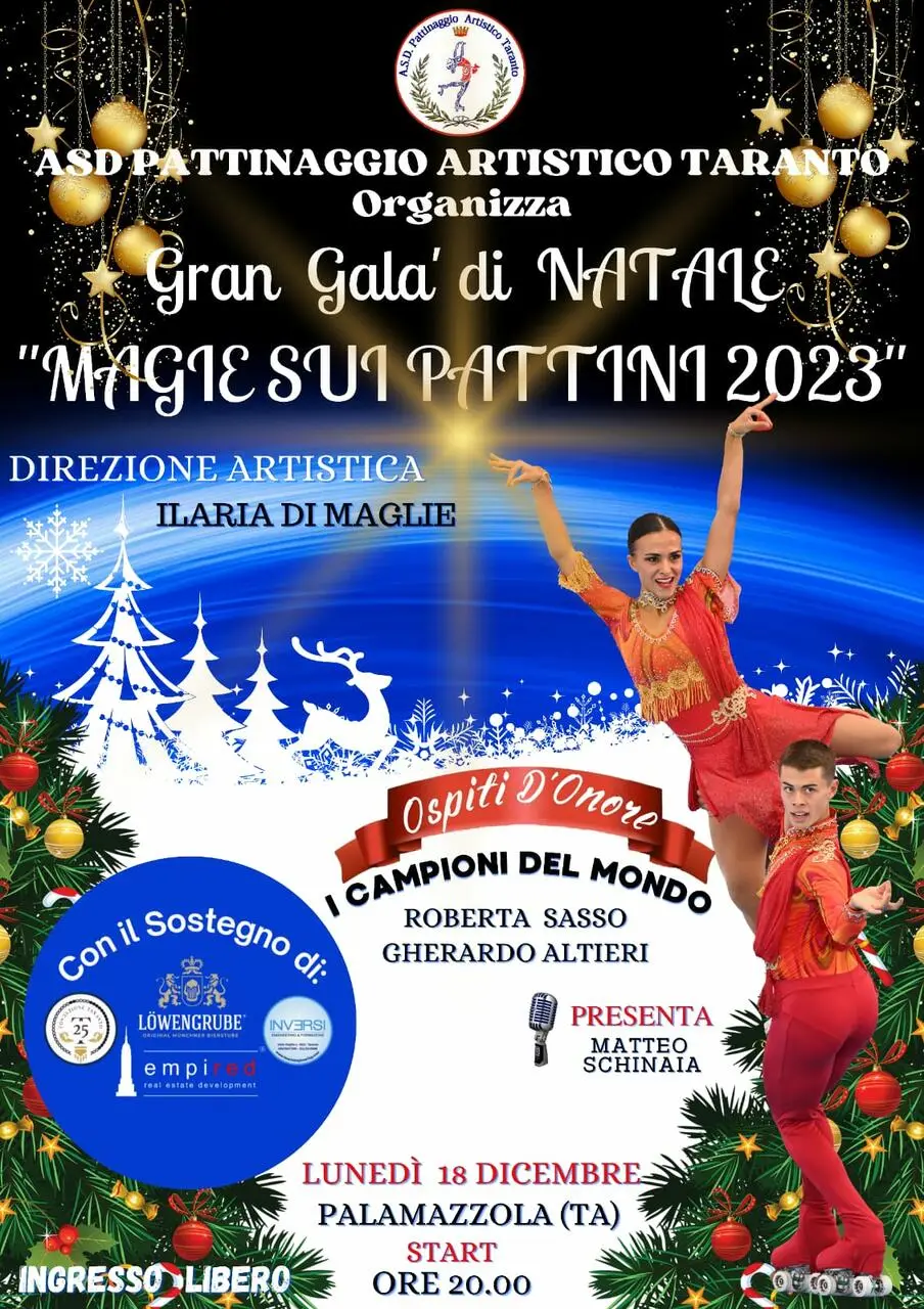 Lunedì 18 dicembre alle ore 20 al "PalaMazzola" di Taranto spazio alle emozioni con "Magie sui pattini 2023", il Gran Galà di Natale del Pattinaggio Artistico Taranto.