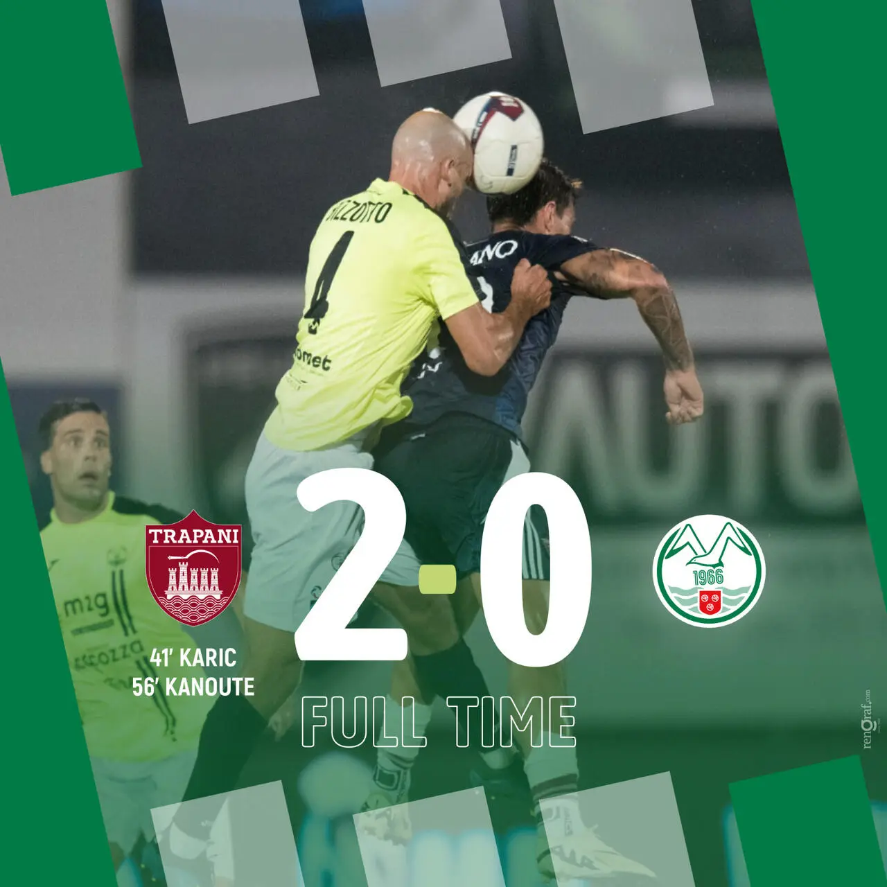 TRAPANI (4-3-3): Seculin; Ciotti, Bolcano, Benassai, Sabatino (Martina); Karic, Marino (72′ Mastrantonio), Crimi; Kanoute (72′ Bifulco), Lescano (80′ Udoh), Fall (Zuppel). A disposizione: Ujkaj, Pozzi, Bifulco, Carraro, Pino, Kragl. Allenatore: Alfio Torrisi