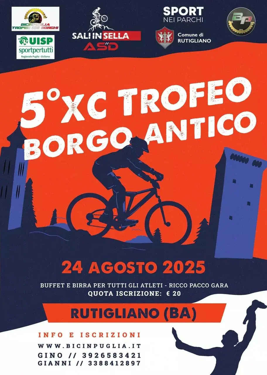 La 5ª edizione del Trofeo XC Borgo Antico, organizzata dallo Sali in Sella Store in sinergia con l’ASD Sali in Sella, si è rinnovata ancora una volta per offrire un’esperienza autentica di mountain bike nel cuore di Rutigliano (provincia di Bari). In programma per il 24 agosto 2025, questa tappa molto attesa del circuito Borghi del BicinPuglia 2025 ha saputo unire con passione l’amore per lo sport e la valorizzazione del territorio.