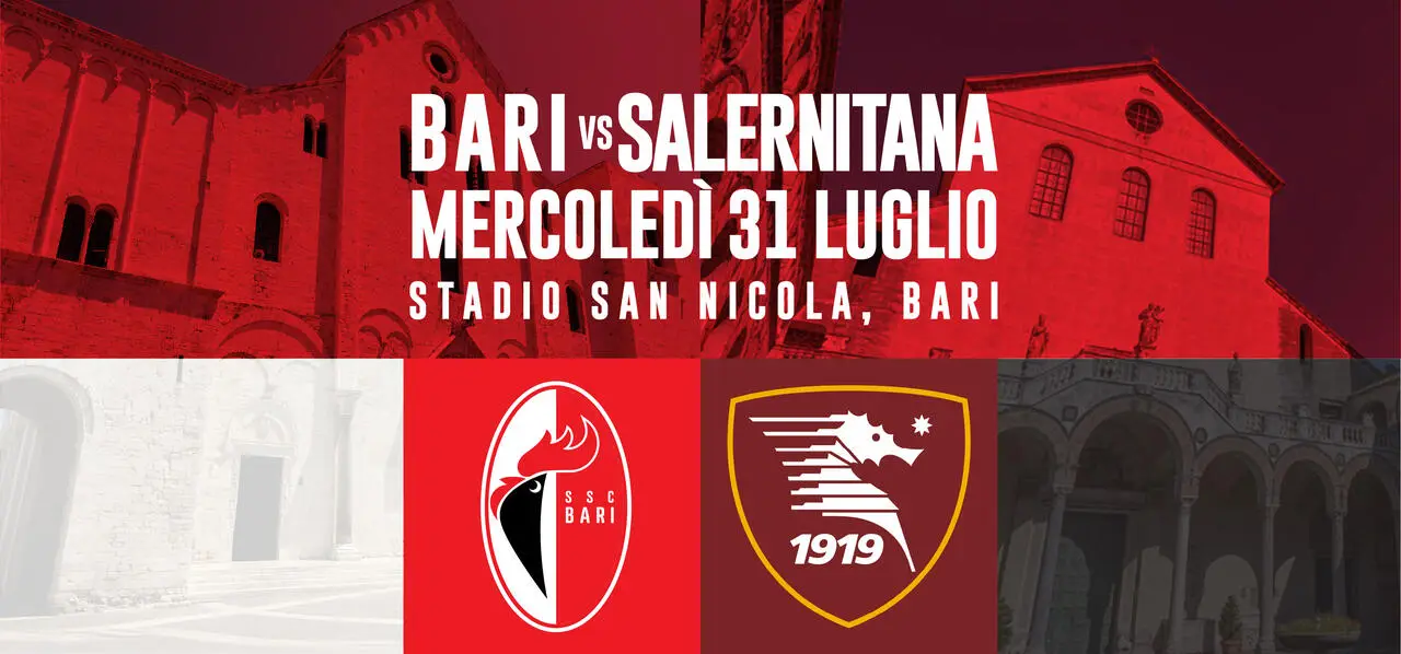 La sera di mercoledì 31 luglio, alle ore 20:30 al San Nicola, Bari e Salernitana si affronteranno in un match amichevole di preparazione alla prossima stagione.
