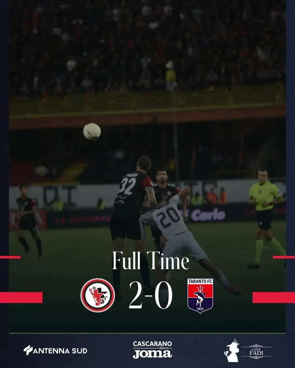TARANTO (3-5-2): 1 Del Favero; 14 Verde, 6 Shiba, 5 Marong; 72 Mastromonaco, 21 Matera (83' 18 Schirru), 8 Fiorani (73' 24 Speranza), 7 Varela, 33 Vaughn (63' 27 Garau); 20 Guarracino, 10 Fabbro. A disposizione: 94 Meli, 3 Contessa, 34 Locanto, 39 Iervolino, 44 Picardi, 80 Fiorentino. Allenatore: Chiaiese (Gautieri squalificato)