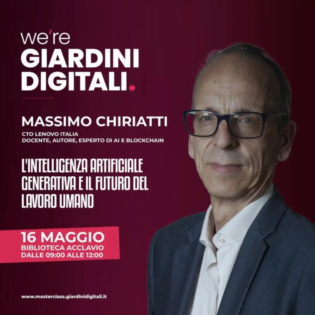Venerdì 16 maggio 2025, dalle 9:00 alle 12:00, presso la Biblioteca Civica “Pietro Acclavio” di Taranto, si terrà un evento di alto profilo che mette al centro il cambiamento tecnologico in atto e le sue conseguenze per il mondo del lavoro. Si tratta della Masterclass di GIARDINI DIGITALI, il progetto selezionato e sostenuto dal Fondo per la Repubblica Digitale - Impresa Sociale, dal titolo “L’intelligenza artificiale generativa e il futuro del lavoro umano: tra responsabilità e opportunità”, condotta da Massimo Chiriatti, Chief Technology & Innovation Officer di Lenovo Italia, docente universitario e autore di riferimento nel panorama italiano dell’innovazione.