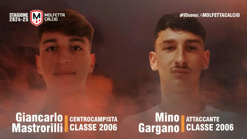 La Molfetta Calcio è lieta di annunciare che i giovani calciatori Mino Gargano e Giancarlo Mastrorilli sono stati aggregati alla prima squadra per la stagione 2024/25.