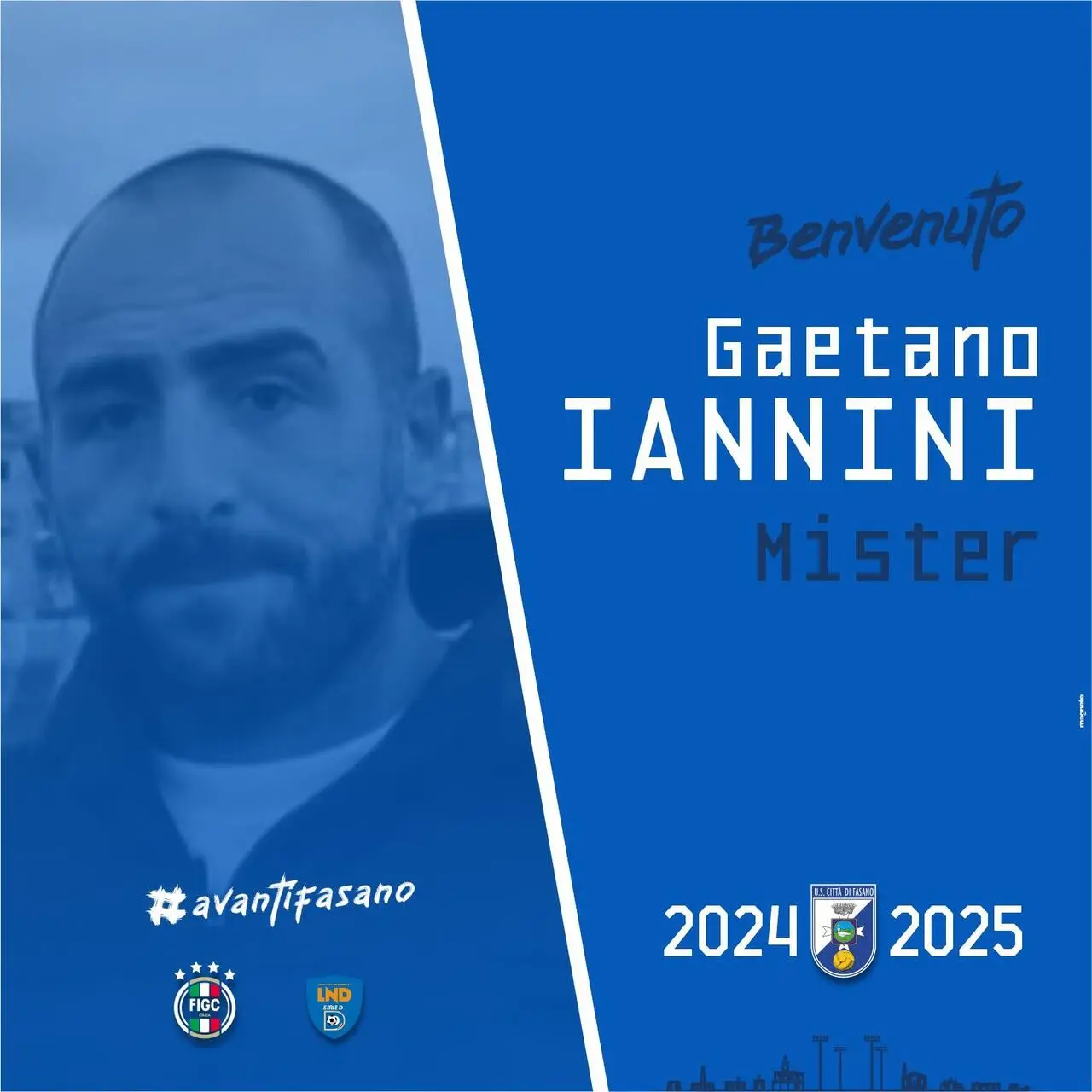 Sarà Gaetano Iannini l’allenatore della prima squadra dell’US Città di Fasano che si appresta a partecipare alla Serie D 2024/25. Il quarantenne napoletano, ex calciatore, è reduce dalla positiva esperienza alla guida della formazione Primavera della Cavese, fermatasi solo nell’atto conclusivo del Campionato Nazionale Juniores che ha visto ben figurare anche i biancazzurrini.