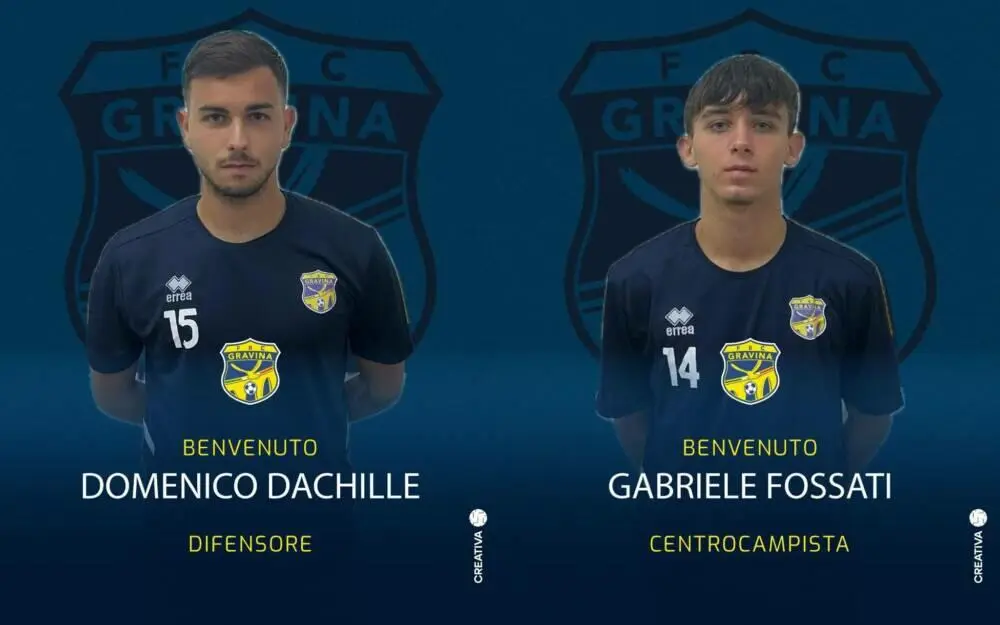 La FBC Gravina comunica l’acquisizione delle prestazioni sportive dei calciatori Domenico Dachille e Gabriele Fossati. Dachille, duttile difensore mancino classe 2005, nato a Bari, proviene dal settore giovanile dell’Avellino. Nella passata stagione si è disimpegnato nel campionato di Primavera 2. In precedenza è cresciuto nelle cantere di Bari e Napoli. Fossati, interno di centrocampo nato nel 2007, nello scorso campionato ha indossato la maglia del Serra Riccò, società militante nel campionato di Eccellenza ligure. Entrambi i calciatori sono a disposizione di mister Ragno in vista della gara di domani contro la Scafatese.