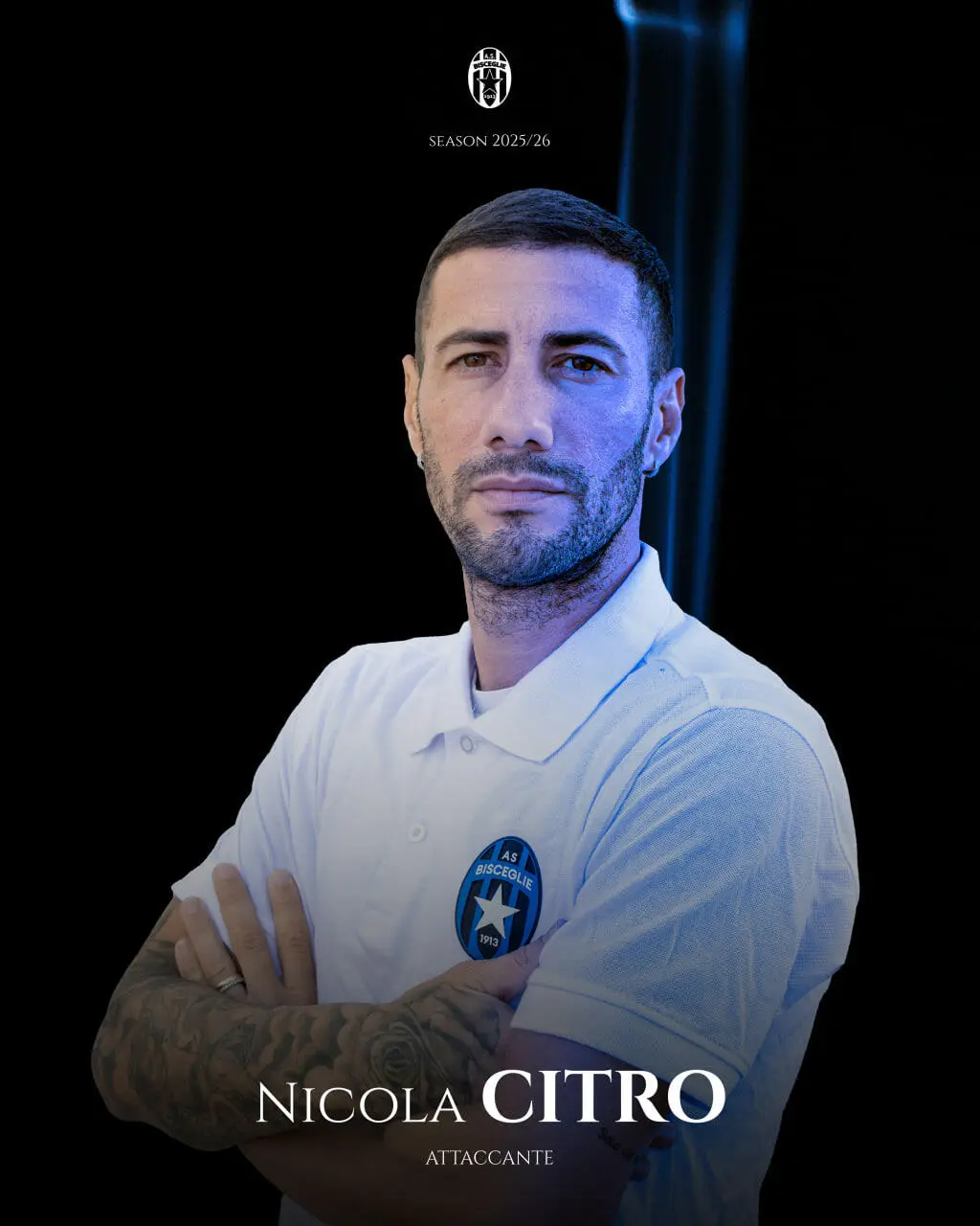 Con grande orgoglio, l'AS Bisceglie Calcio 1913 annuncia di aver ufficialmente raggiunto un accordo con Nicola Citro, attaccante classe 1989 che ha scelto di sposare la causa nerazzurra ed è da subito a disposizione di Mister Pino Di Meo.