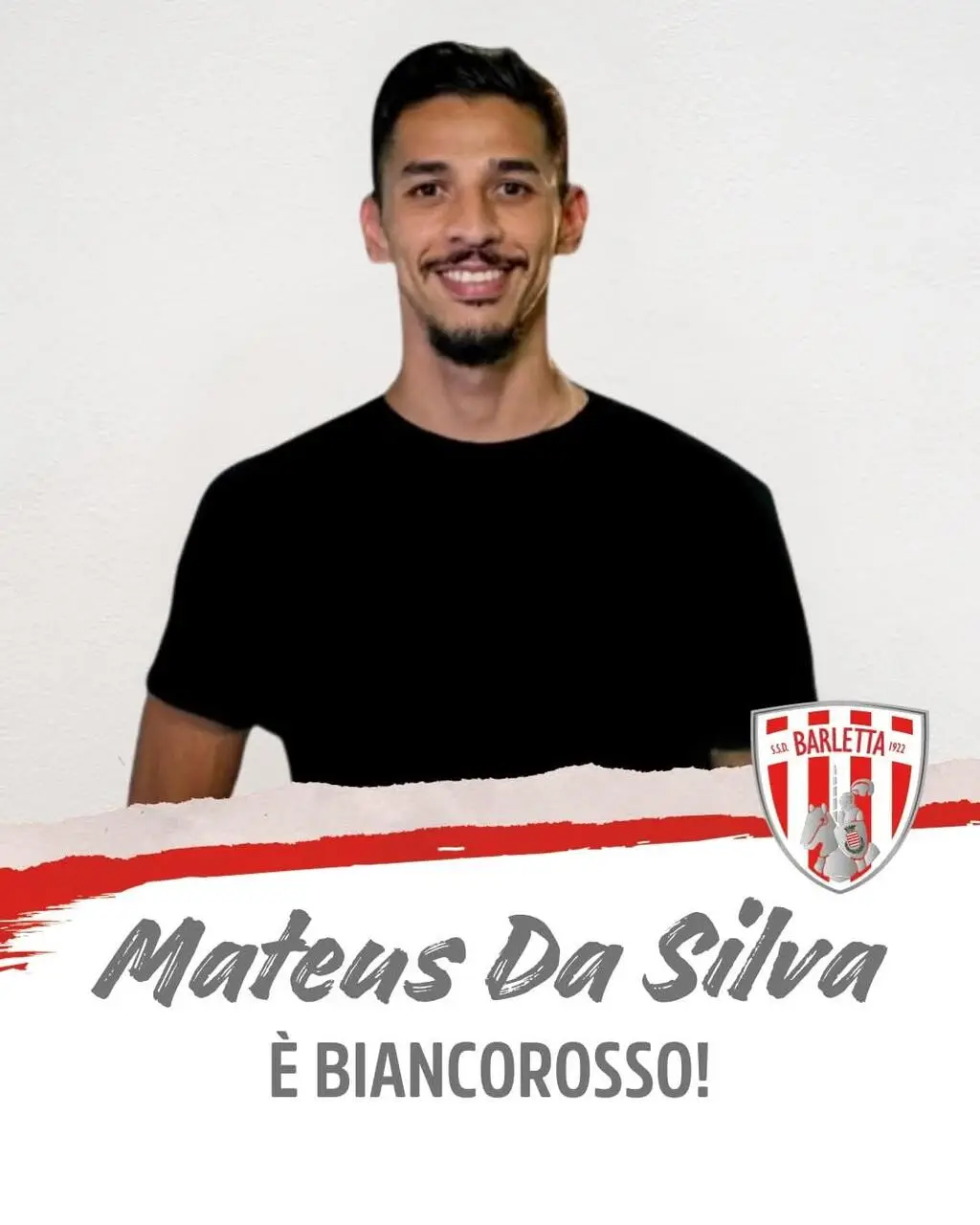 Il Barletta 1922 ufficializza di aver sottoscritto un accordo per la stagione sportiva 2025/26 con l’attaccante brasiliano Mateus Castro Da Silva, classe 1997.