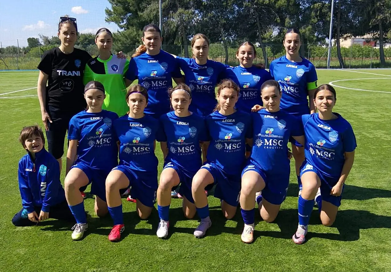 Bellissima e convincente vittoria dell'U15 dell'Apulia Trani che sabato ha battuto, 5-1, il Real Siti grazie alla tripletta di Melissa Guerini e alla doppietta di Sofia Franklin. Per la cronaca primo mini tempo è terminato 1-0, il secondo 2-0 e il terzo 5-1.