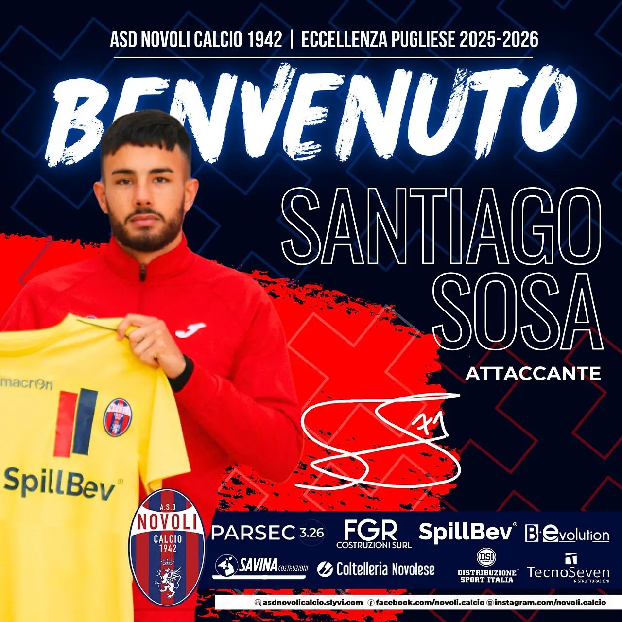 L'ultimo arrivo del calciomercato si è presentato ai tifosi rossoblù nel migliore dei modi, risultando decisivo per la vittoria contro l'Atletico Acquaviva nell'ultima gara del 2025 al Toto Cezzi. 𝑺𝒂𝒏𝒕𝒊𝒂𝒈𝒐 𝑵𝒊𝒄𝒐𝒍𝒂 𝑺𝒐𝒔𝒂, classe 2002, ha già mostrato sul campo le sue qualità: velocità, dribbling e istinto letale sotto porta, ma anche qualità e fosforo per la linea mediana. Un rinforzo d'eccezione per mister Luperto, un altro sforzo voluto dal presidente Murra e dalla società, un'altra operazione condotta magistralmente dai direttori Russo e Capone. Prima di indossare la casacca del Novoli Calcio, l'attaccante argentino ha giocato nell'#EccellenzaPugliese con quelle dell'U.G. Manduria la scorsa stagione (3 goal) e del Massafra, nella prima parte di quella attuale, siglando 3 goal.