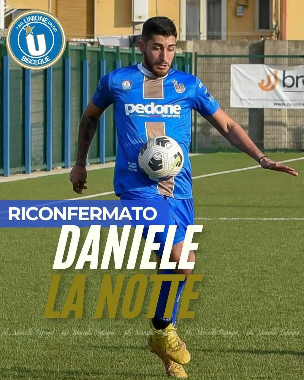 Nuova conferma in casa Unione Calcio Bisceglie, che mantiene in rosa il laterale destro classe 2006 Daniele La Notte, dopo l’ottimo campionato disputato nella scorsa stagione.