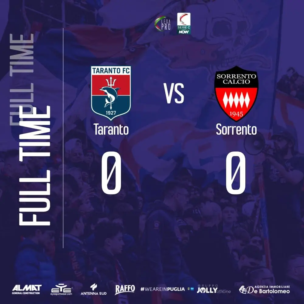 Note: Angoli: 6-1. Recupero: 1'pt e 5'st. Stadio ''Erasmo Iacovone'' - Taranto. Partita iniziata alle ore 18.30