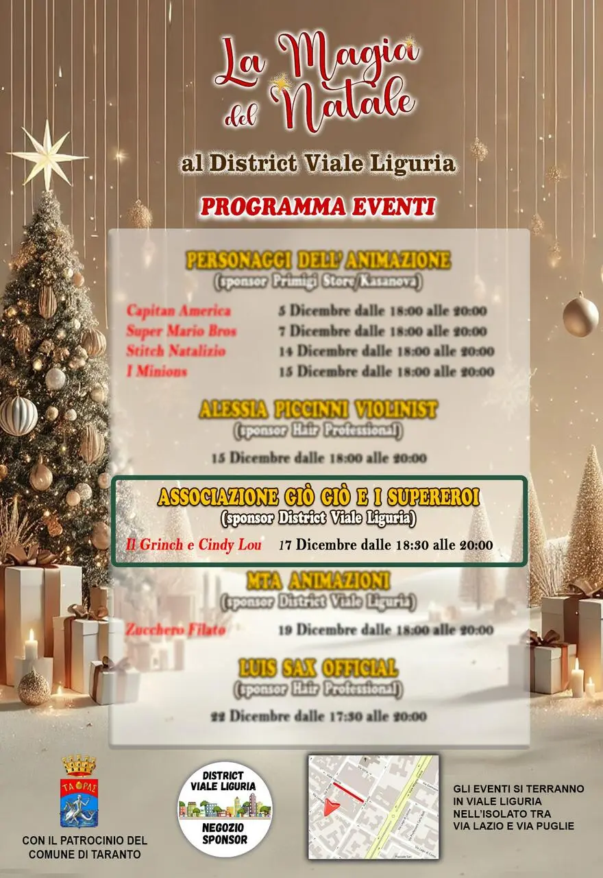 Ancora un grande evento natalizio con il Grinch e Cindy Lou che martedì 17 dicembre vi aspettano nel District Viale Liguria (dall’angolo di Via Lazio all’angolo di Via Puglie) dalle 18:30 alle 20:00 per scattare tante foto. Non mancate!!!