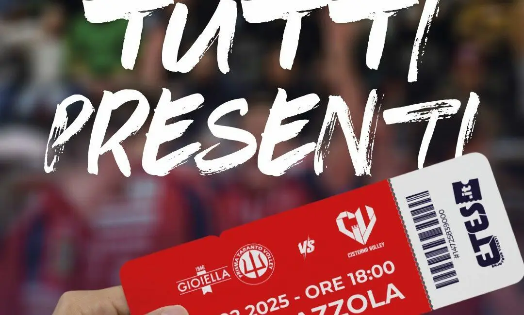 La Gioiella Prisma Taranto Volley comunica che dalle ore 12:00 di oggi è attiva la prevendita dei tagliandi relativi all’incontro valevole per la diciassettesima giornata di Superlega Credem Banca 2024\25 contro la Cisterna Volley. L’incontro si terrà Domenica 9 Febbraio 2025 alle ore 18.00 presso il Palamazzola.