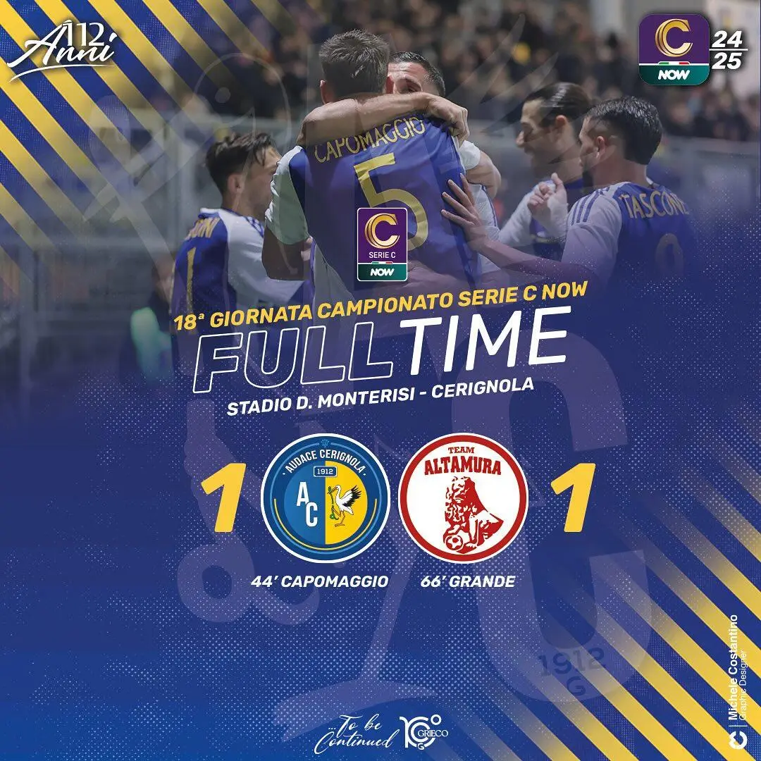 Reti: al 44' pt Capomaggio G. (Audace Cerignola) al 21' st Grande M. (Altamura) .