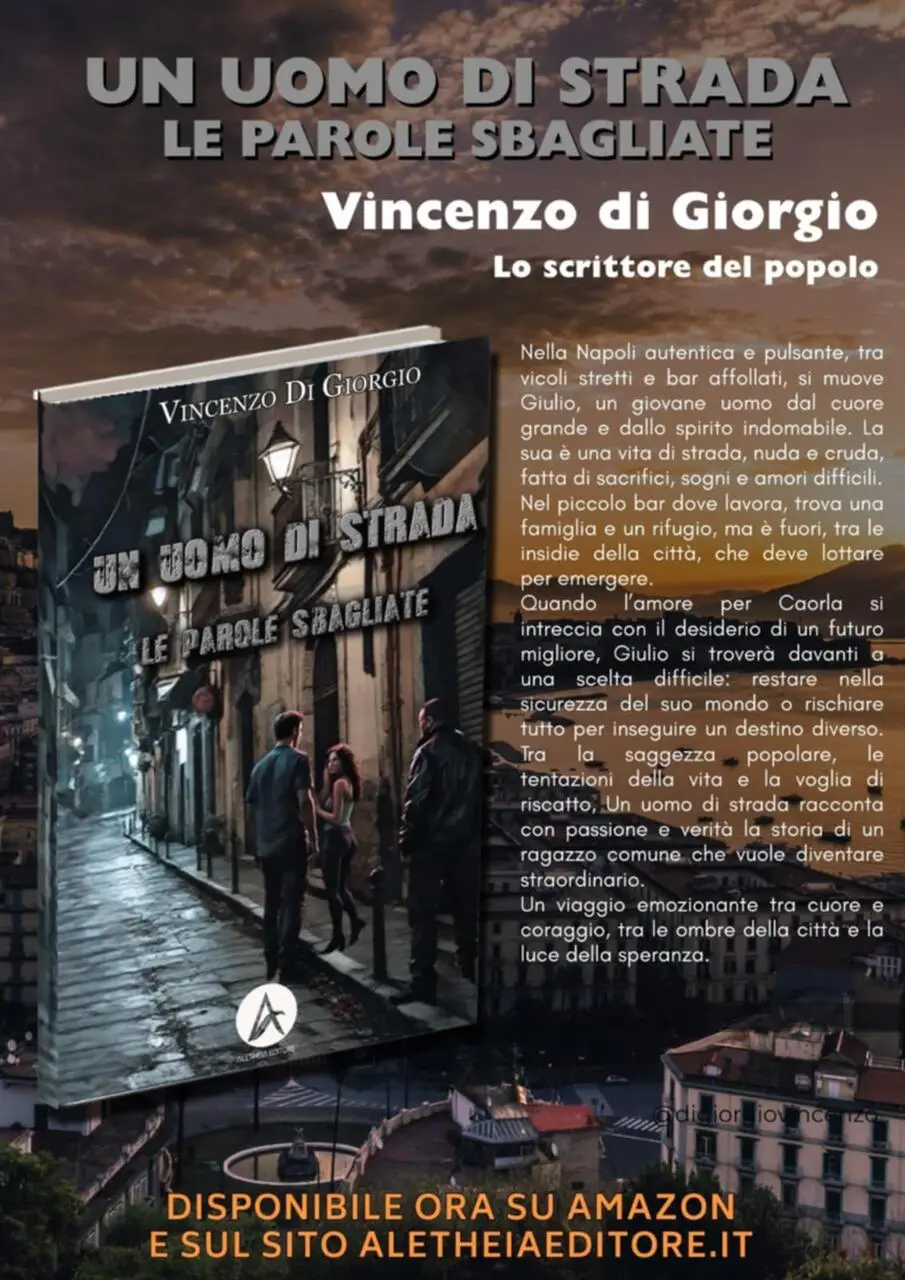 Un viaggio emozionante nel cuore vivo di Napoli, tra verità taciute e sogni a voce alta: Un uomo di strada, scritto da Vincenzo Di Giorgio e pubblicato da Aletheia Editore, è un romanzo che racconta la forza di chi cresce ai margini e non smette di credere in un’alternativa possibile. Di Giorgio – napoletano verace, con alle spalle un'esperienza di vita fatta di lavoro, ascolto e osservazione del reale – attinge al suo vissuto per restituire, con autenticità, la voce di chi spesso non viene raccontato.