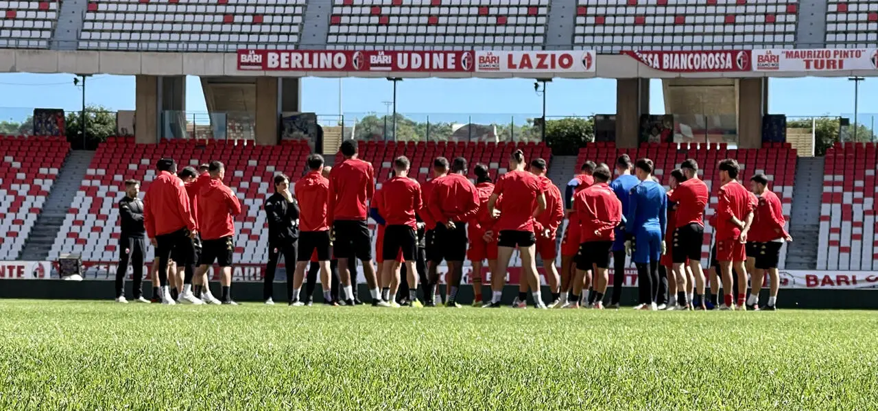 Questo pomeriggio la squadra, dopo un approfondito prologo in sala video, si è allenata sul terreno del San Nicola sostenendo una seduta basato prevalentemente su aspetti tattici: dopo un riscaldamento a secco, oltre ad esercitazioni a tutto campo 11 contro 0 incentrate sullo sviluppo dell'azione offensiva, lavoro specifico su calci piazzati e conclusioni a rete.