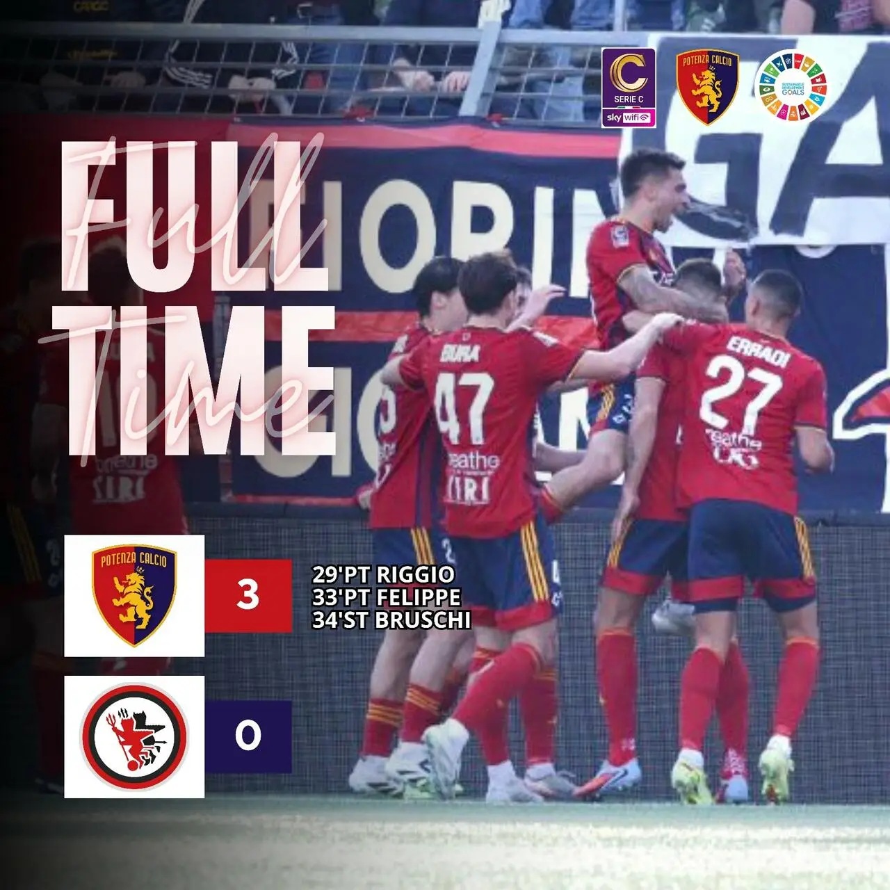 POTENZA: Alastra, Felippe (76' Bruschi), Anatriello, D'Auria (76' Ghisolfi), Riggio (84' Novella), Balzano, De Marco (67' Siatounis), Bachini, Erradi (84' Erradi), Petrungaro, Bura.