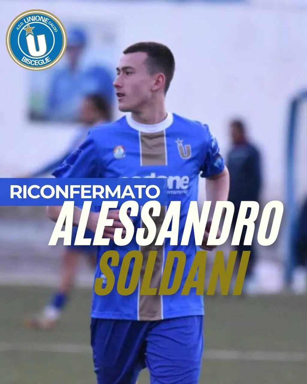 Qualità e gioventù per il centrocampo dell’Unione Calcio Bisceglie, che conferma anche per la prossima stagione Alessandro Soldani, centrocampista offensivo classe 2008.