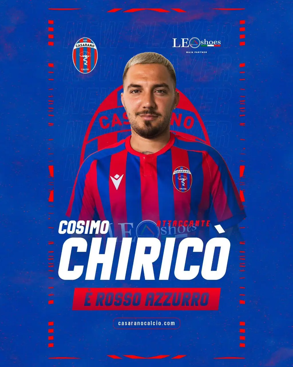 La società Casarano calcio comunica di aver acquisito le prestazioni professionali del calciatore Cosimo Chiricò, attaccante, classe 1991. Cresciuto nel settore giovanile del Lecce, per il calciatore è un “ritorno” a Casarano, avendo indossato la maglia rossazzurra nel campionato 2010-2011 in serie D (27 presenze e 7 gol). Cosimo Chiricò ha sviluppato una carriera longeva e ricca di successi tra Serie B e Serie C. Ha accumulato oltre 400 presenze tra i professionisti, con quasi 90 gol e numerosi assist decisivi. Ha centrato 4 promozioni in Serie B con Lanciano, Lecce, Latina, Ascoli, Foggia, Cesena, Padova, Monza, Crotone (37 presenze e 2 gol), Catania (35 presenze e 1 gol) e, da febbraio di quest’anno, alla Cavese con 9 presenze e 1 gol.