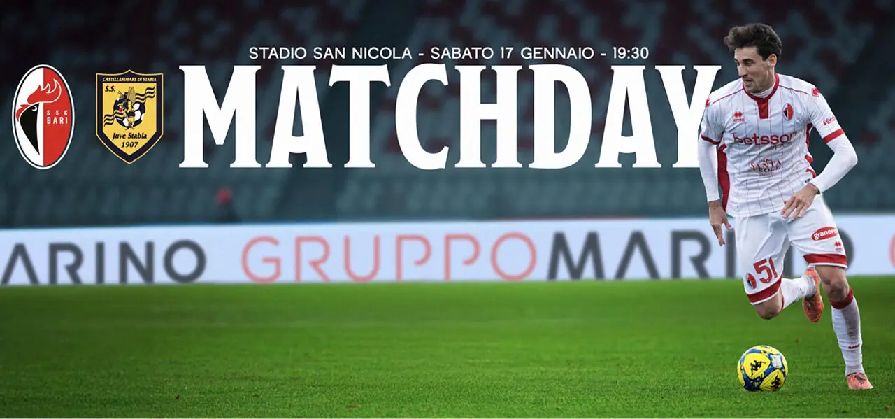 Il Bari di mister Vincenzo Vivarini si prepara ad ospitare la Juve Stabia allenata da mister Abate in occasione della 20a giornata Serie BKT in programma questa sera, a partire dalle 19:30, sul terreno del San Nicola .
