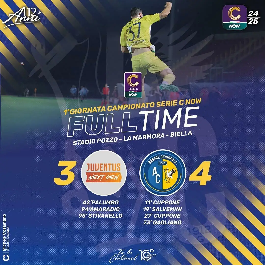 Roboante vittoria dell'Audace Cerignola sul campo della Juventus Next Gen