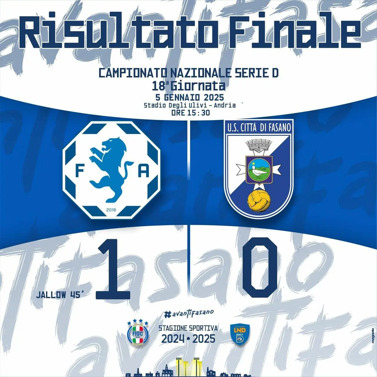 VIDEO Fidelis Andria-Fasano 1-0. La sintesi di Antenna Sud