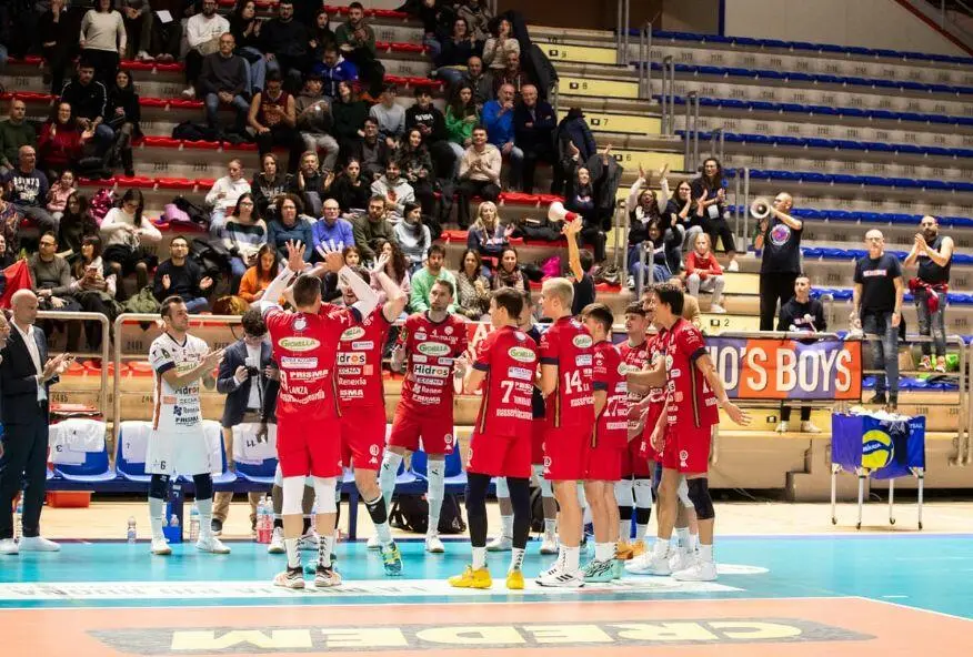 Domenica potranno contare sulla diagonale Cachopa e Szwarc, con al centro il nazionale Galassi e l’ex rossoblù Di Martino, con il giapponese Tagahaschi molto in forma, il canadese Maar che sta disputando un’ottima stagione e l’altro ex Loeppky a disposizione che si alterna sul ruolo di opposto e di banda, ed il libero Gaggini.