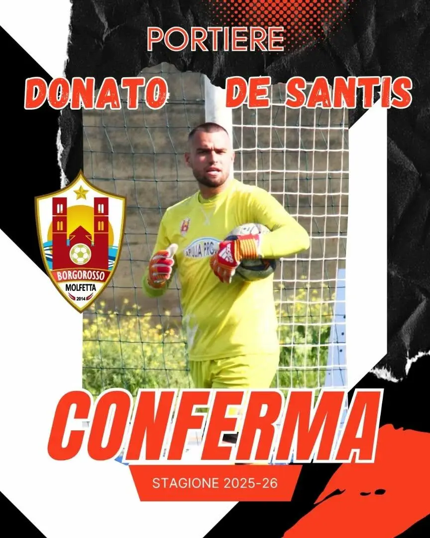 Una garanzia per la porta del Borgorosso Molfetta: 𝗗𝗼𝗻𝗮𝘁𝗼 𝗱𝗲 𝗦𝗮𝗻𝘁𝗶𝘀 resta a difesa dei pali, per quella che sarà la sua quinta stagione con la nostra maglia. L'estremo difensore classe 2000, oltre al suo grande valore tecnico, è ormai un riferimento importante per tutto lo spogliatoio