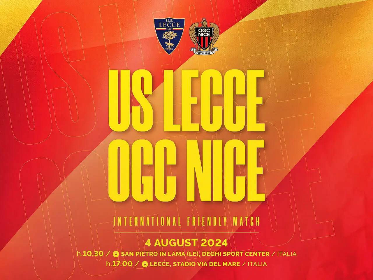 L’U.S. Lecce comunica che domenica 4 agosto è in programma una doppia amichevole internazionale con l’OGC Nizza che si svolgerà con la seguente modalità:
