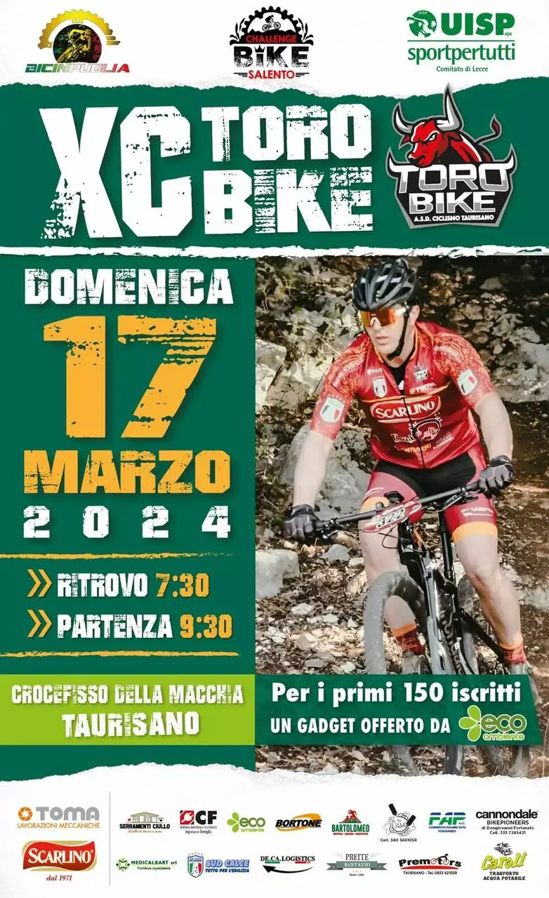 Appuntamento domenica 17 marzo a Taurisano, in provincia di Lecce, per la XC Toro Bike - Crocefisso della Macchia, organizzata dall'Asd Toro Bikers, una squadra fondata nel 2019, composta da ciclisti agonisti ed amatoriali che racchiudono insieme la passione per la bici.