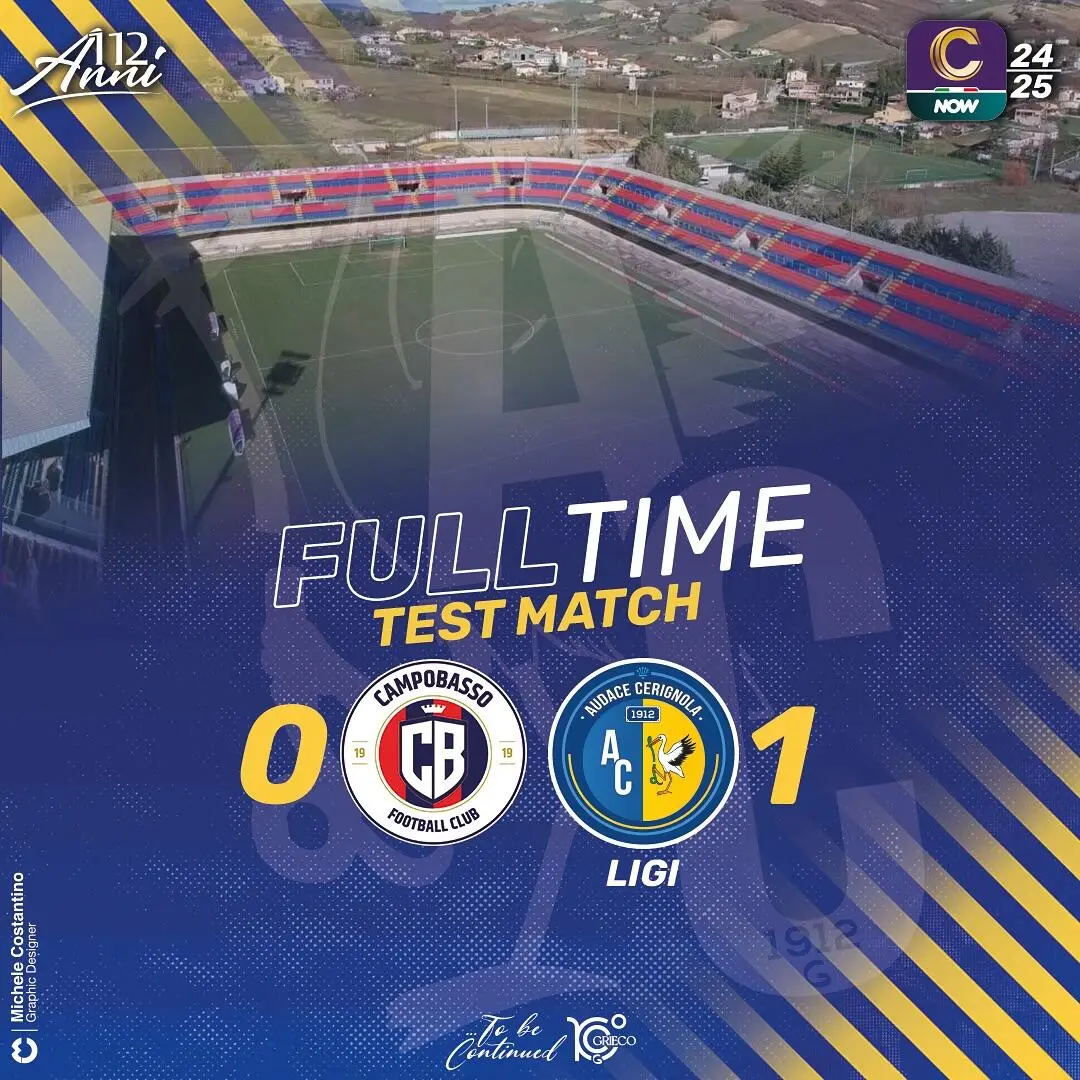 Calcio Foggia Audace Cerignola: vittoria nel test con il Campobasso 04.08.2024 22:30 0 Twitter Facebook Whatsapp Telegram Email Basta un gol di Ligi all'Audace Cerignola per superare il Campobasso, formazione del girone B della serie C, nell'amichevole di domenica pomeriggio. Commenti Fasano: manita nel test con l'Arboris Belli Bicinpuglia, Nicola Sorressa e Anna Ciccone vincono il Trofeo dei Borghi di Castellaneta Ultime News 0 Apulia Trani C5, il neo tecnico Sipone: 'Con la Nettuno Bisceglie potevamo anche pareggiare' 0 Lecce: l'Udinese si aggiudica l'anticipo del sabato con i salentini 0 VIDEO Milan-Pisa 2-2. La sintesi di SKY