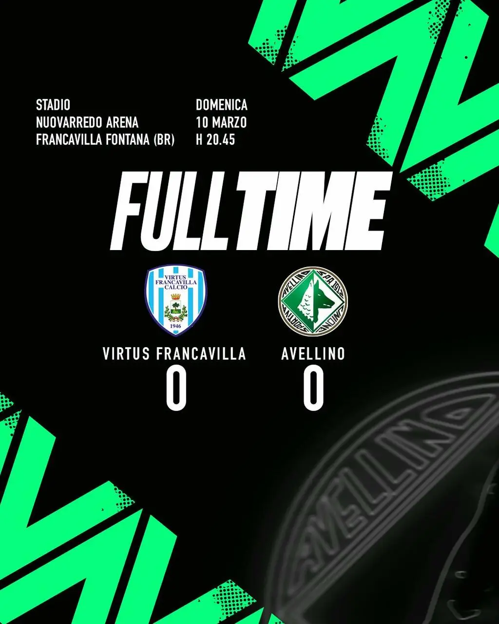 Il tabellino di Virtus Francavilla-Avellino 0-0