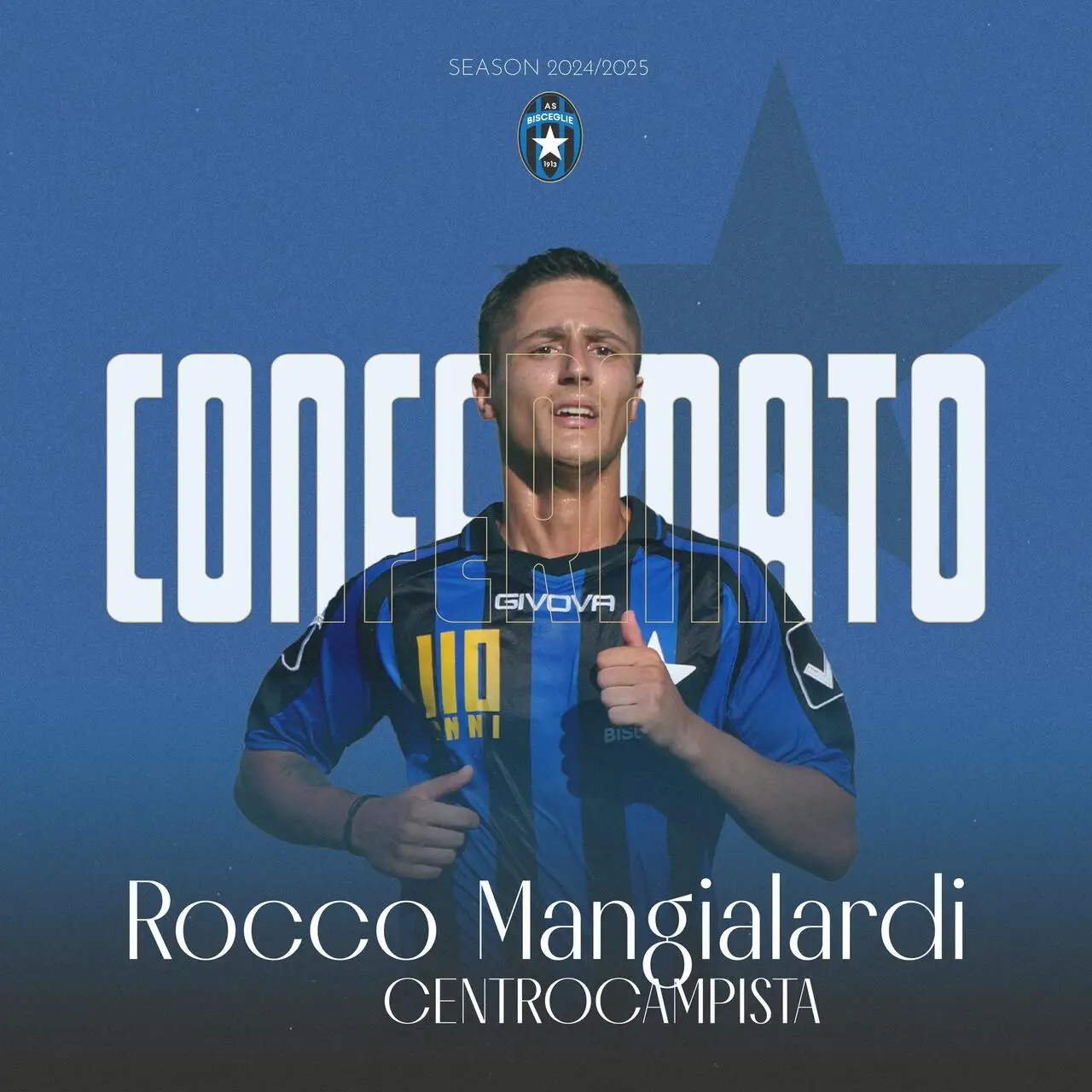 La conferma di Rocco Mangialardi, cui va l’augurio di grandi successi da parte della società, arriva a ventiquattr’ore di distanza da quella di un altro calciatore presente in rosa lo scorso anno, Orazio Antonio Stefanini: la loro esperienza e le loro qualità saranno indispensabili nella stagione che sta per iniziare.